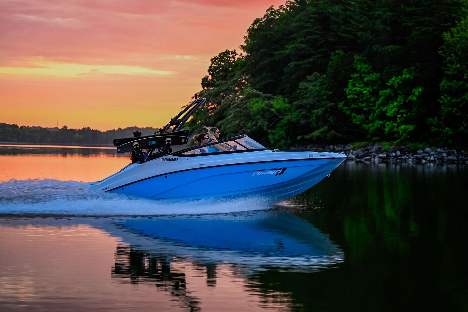 The sporty folding aluminum tower offers the perfect angle for towing. Add the Bimini when you need a little shade from the summer sun.