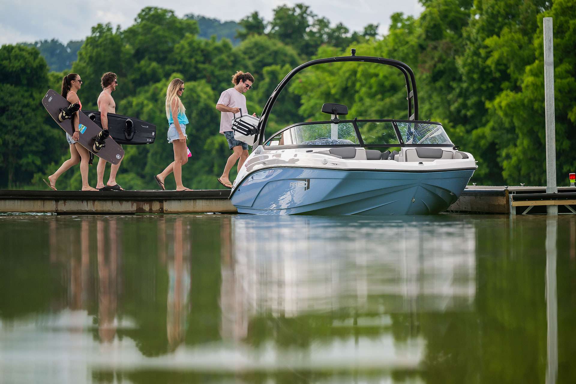 Cette tour sportive, faite d'alu, offre l'angle idéal pour tracter les mordus de sports nautiques. Vous souhaitez un peu d'ombre pour vous protéger des rayons du soleil' Suffit d'installer le toit Bimini!